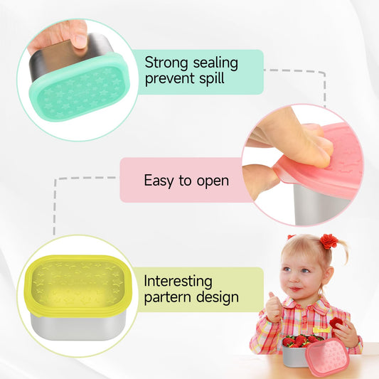 SOPHICO Stainless Steel Snack Containers for Kids, 8 oz Small Food Storage Container with Silicone Lid - Perfect 304 Metal Toddler Lunch Box for Daycare and School, Leak Proof (6 Pack)