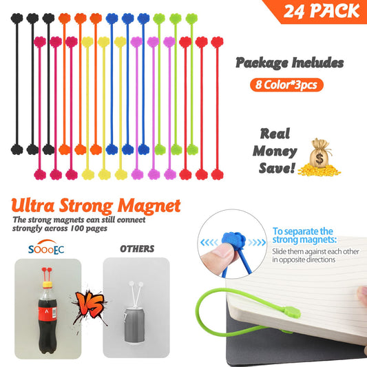SOOOEC Magnetic Cable Ties, 24 Pack 7.2" Magnetic Cord Ties Cute Cloud Design, Reusable Silicone Twist Ties with Strong Magnet for Cord Organizer Keeper Wrap Clips, Fridge Magnets, Assorted Colors.