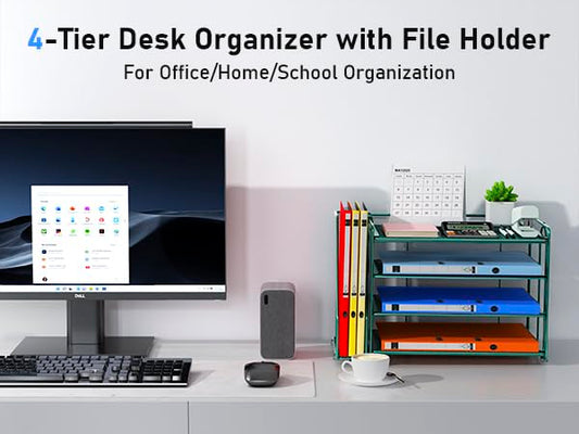 Spacrea Desk Organizers and Accessories, Paper Organizer for Desk with File organizer, Desk Accessories & Workspace Organizers for Office Supplies (Dark Green)