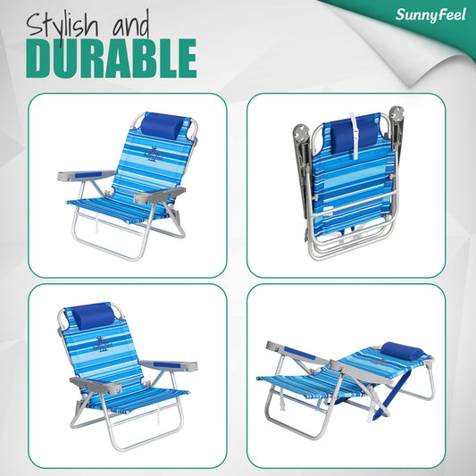 SUNNYFEEL Extra Wide 28" Low Beach Chair 5 Position Lay Flat, XL Oversized Portable Folding Camping Chairs with Cup Holder for Outdoor/Trip, Lightweight Foldable Backpack Beach Chair for Adults