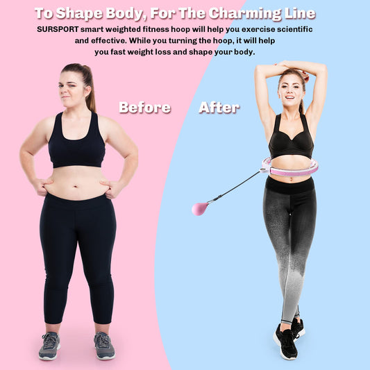 SURSPORT Smart Weighted Fitness Hoop, 3-in-1 Quick Weight Loss Fitness Massage Adjustable Weighted Hoops for Kids and Adults with Easy Detachable Knots, Gravity Ball
