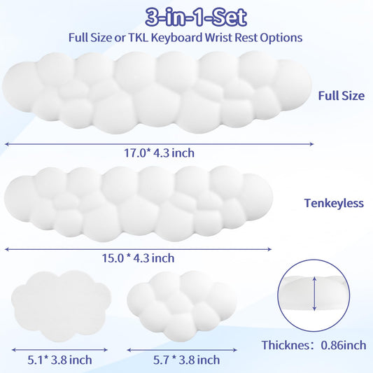 Sushret Cloud Wrist Rest Keyboard, Cloud Keyboard Wrist Pad Set with PU Leather Memory Foam, Cute Arm Rest for Palm Support, PC/Gaming Desk Accessories/Office Setup/Computer Hand Cushion - White