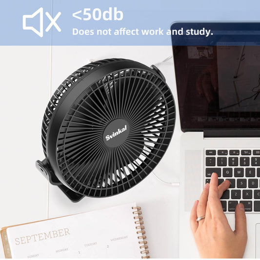Svinkal Portable Clip on Fan 10000mAh Battery Powered, USB Type C, Supports 720° Adjustment, 4 speed, 8inch Personal Fan for Table, Bedroom, Desk, Camping, Stroller, Golf Cart