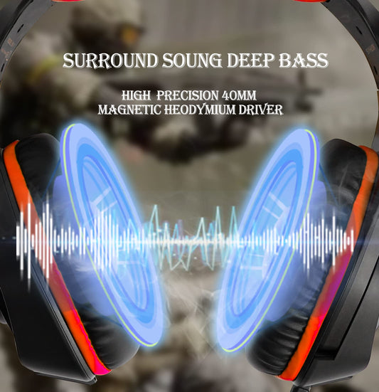 SVYHUOK Pro Gaming Headset for PC PS4 Xbox One Bass Surround Sound Over-Ear Headphones with Mic/LED Light/Soft Memory Earmuffs for Computer Laptop Switch Games Kids Boys Teens Gifts