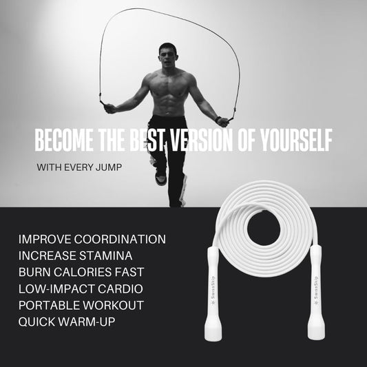 SwissSkip Speed Jump Rope by Dayan Kolev, 5mm PVC Skipping Rope, for Beginners and Advanced Athletes, Ideal for Fitness, Cardio, Boxing & CrossFit, Adjustable length with Unbreakable Handles (Black)
