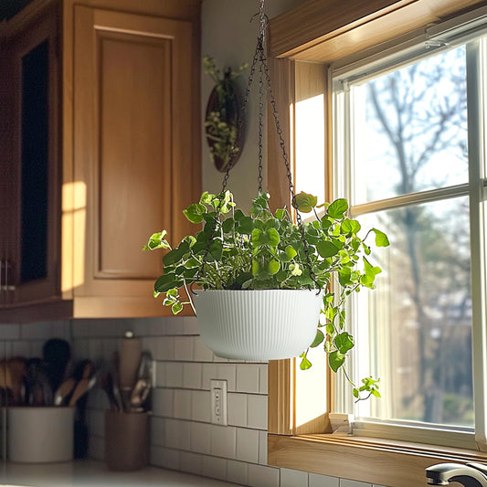 T4U Hanging Planter Self Watering 8 Inch, 2 Pack White Indoor Outdoor Hanging Plant pots, Hanging Flower Pot with Drainage Hole & Plug & Chain with 3 Hooks for Garden Home Decor