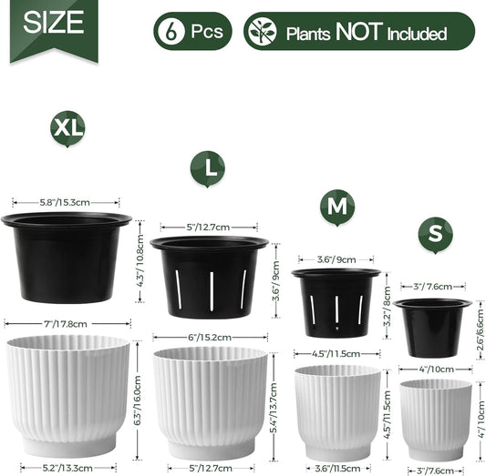 T4U Plastic Self Watering Planter, Long Term Water Storage Plant Pot/Macaron-Colored Flower Pots Outdoor Indoor Yard Garden Home Decoration, Small Size - Set of 6,White