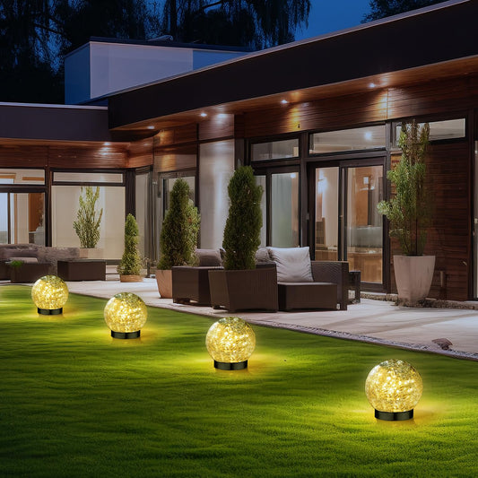 SyouHome Solar Garden Lights Outdoor Waterproof, 4 Pack Cracked Glass Ball Light, Ground Landscape Garden Decor, Solar Globe Decorative for Pathway/Patio/Lawn/Yard (Warm White, 4.7")