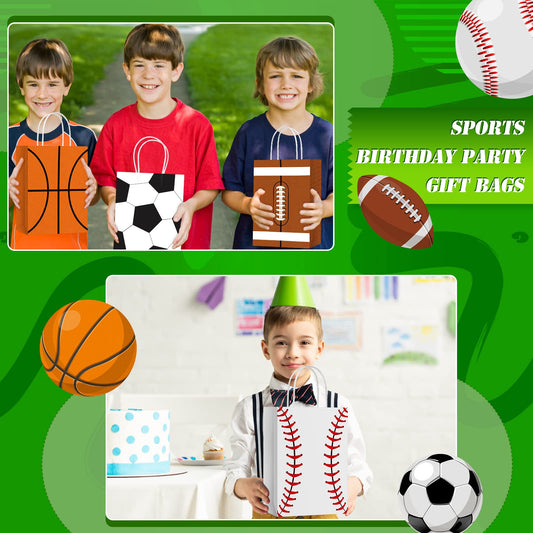 TaoBary 24 Pieces Sports Party Favor Bags Soccer Baseball Goodie Gift Bag with Handles for Football Basketball Baseball Sports Birthday Baby Shower Party Supplies Decoration