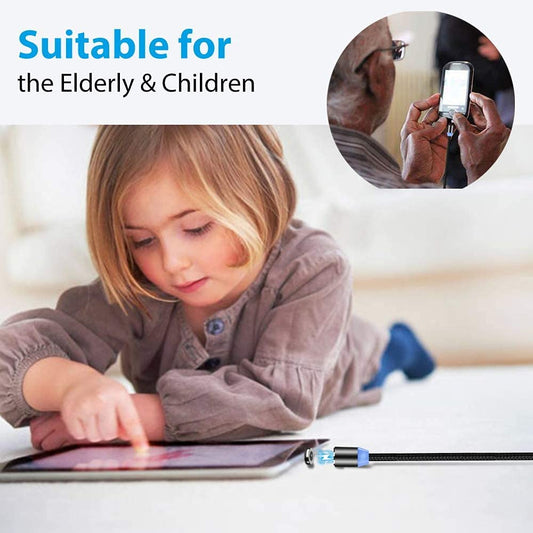 Terasako Magnetic Charging Cable 5-Pack (3/3/6/6/10FT) - 540° Rotating Magnetic Phone Charger Cable with LED Light - 90° Angle Connector, Nylon-Braided Cords (Black)