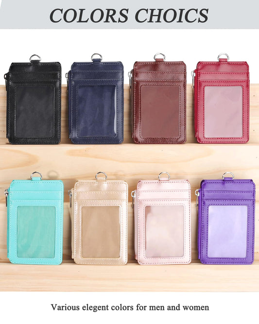 Teskyer ID Badge Holder with Lanyard, 1 Zip Pocket and 4 Card Slots, Lanyard ID Card Holder Wallet for Office School Work Badges, Cruise Ship Cards, Hotel Key Cards, Pass Cards - Black