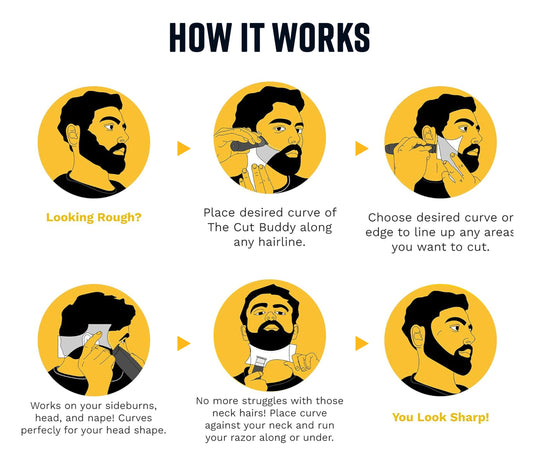 The Cut Buddy PLUS Beard Shaping Tool, Clear Template with Built-in Comb and Bonus Pencil, Ideal for Hairline, Beard, and Mustache Trimming