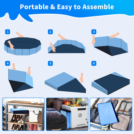 Thecvia Dog Pool for Large Dogs Foldable Kiddie Pool Hard Plastic for Toddlers 1-3, Pets Bath Tub Portable Kids Pool for Backyard Outdoor Play Pool for Doggie Kitty 64x12 inches