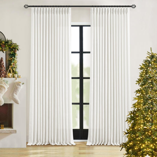 Thick Linen Semi Sheer Curtains 90 Inches Long for Living Room Bedroom Light Filtering Beige Off White Textured Burlap Pinch Pleated Curtains 90 Length Hooks Rings Back Tab for Sliding Door 2 Panels