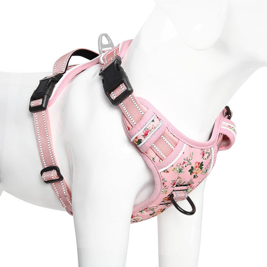 Timos No Pull Dog Harness,NO Need Go Over Dogs Head 3 Snap Buckles Reflective Oxford No Choke Harness with Front & Back 2 Metal Leash Clips Soft Padded for Small Medium Large Dogs Pink S