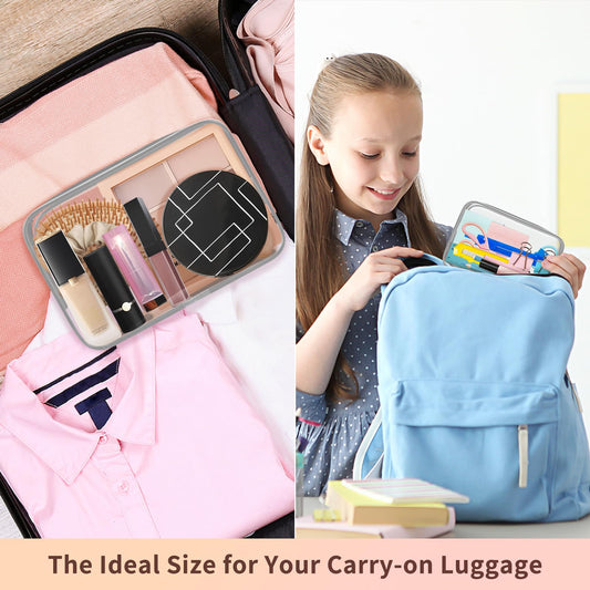 TISRATOK 12 PCS Clear Makeup Bag for Women with Zipper, TSA Approved Toiletry Pouch, Cosmetic Bag Bulk for Travel Organizer Essentials - Grey,Medium