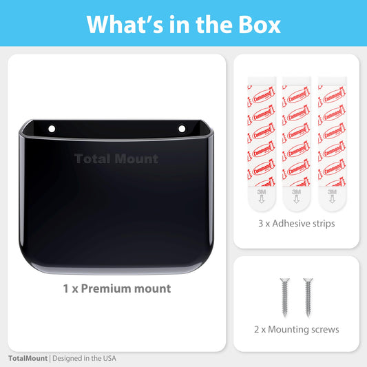 TotalMount Hole-Free Remote Holder – Eliminates Need to Drill Holes in Your Wall (for 2 or 3 Remote Controls – Black – Quantity 1)