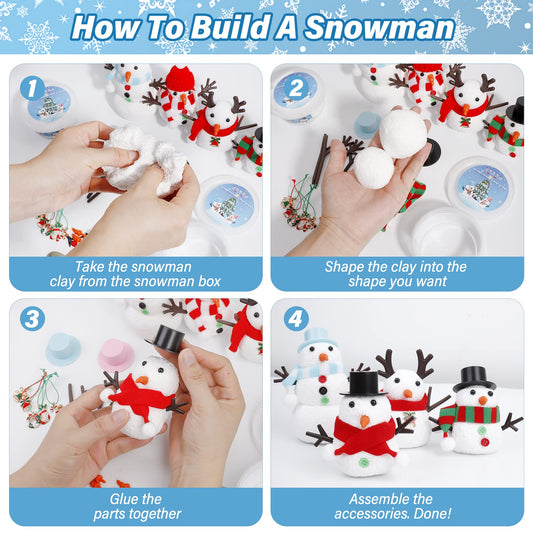 12 Pack Christmas Craft, DIY Snowman Kit for Kids, Build a Snowman Kit Indoor Decorations, Creative Kids Air Dry Modeling Clay, Xmas Activities Snowman Making Kit Toys for Holiday Favor Supplies