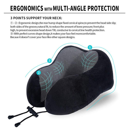 Travel Pillow - Luxury Memory Foam Neck Support Cushion Neck Support Pillow (Gray)