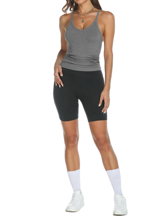 Trendy Queen Womens Ribbed Tank Tops Racerback Summer Basic Camisole V Neck Going Out Slim Fit Fashion Clothes 2024 Darkgrey S
