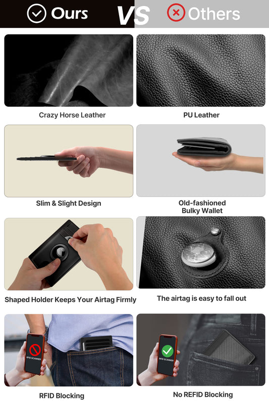 typecase Slim Minimalist Airtag Card Wallet for Men, Front Pocket Premium Crazy Horse Leather Wallet with Airtag Holder, RFID Blocking Cash Credit Card Wallet Compatible with AirTag (Black)