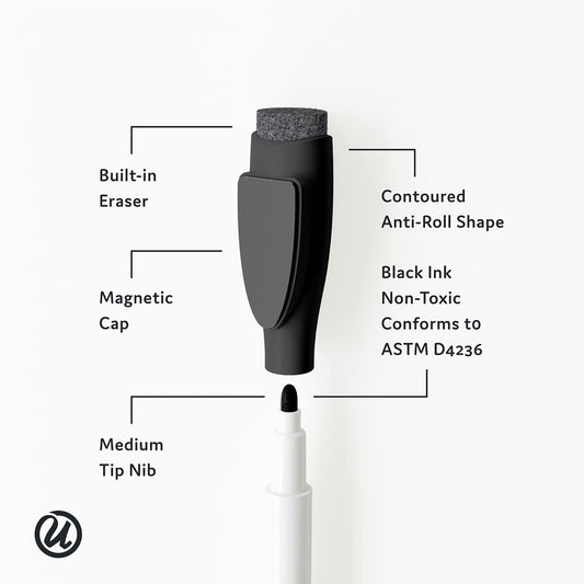 U Brands Framed Magnetic Weekly Calendar Dry Erase Board, Office Supplies, Black Frame, with Marker, Magnet, 11” x 18”