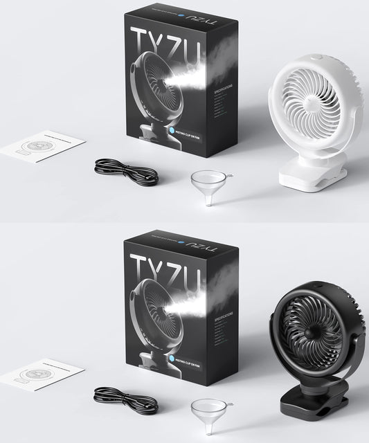 TYZU 7 Inch Portable Misting Fan 4000mAh Battery 360° Rotatable 130mlTank 4 Speeds and Timer, Fan for Baby, Office,Travel,Treadmill, Outdoors Camping,Golf Cart