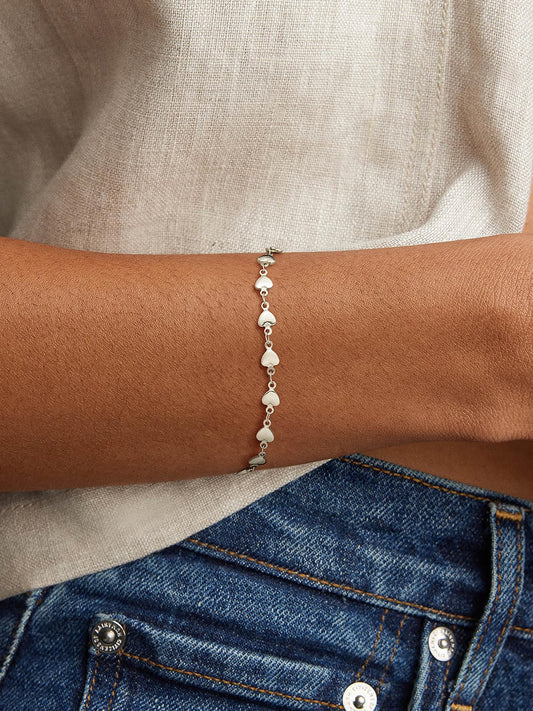 U7 Men Women Stainless Steel Heart Link Chain Bracelet, 8 Inch