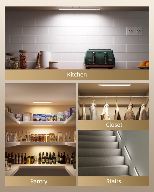 Under Cabinet Lighting Wireless,Rechargeable Battery Motion Sensor Light Indoor,LED Closet Lights USB Charging,3 Color Dimmable Under Cabinet Lights for Kitchen, Cabinet, Wardrobe (3 Pcs)12in