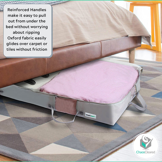 Under Bed Storage Containers for Toys, Clothes, Shoes etc. Underbed Organizer Bag that slides Under the bed without friction or wheels. Low profile 6 height is great for under the couch or other