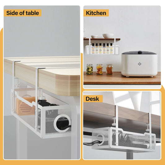 Under Desk Cable Management Tray White, Cinati Wire Organizers No Drill, Cable Tray with Clamp for Wire Management, Cord Organization Box for Office, Home - No Damage to Desk