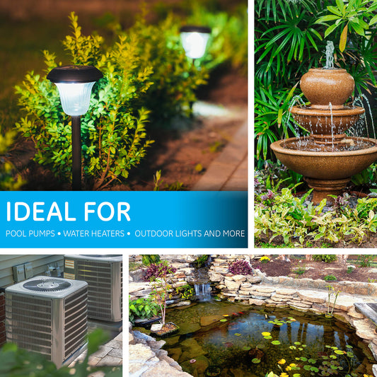 GE 7-Day Digital Pool Timer, 2HP 40A Load Capacity Pump Switch, Outdoor NEMA 3R-Rated Box, Universal Voltage Replacement, Water Heater Control, Tamper Resistant Metal, 46537