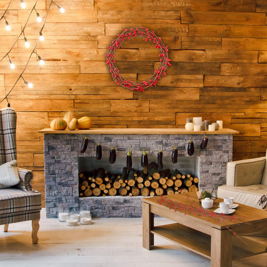 Gejoy 2 Rolls 40 Feet Double Pip Berry Garland Floral Craft Country Pip Berry Garland Floral Craft Decor, Artificial Christmas Decoration (Red)
