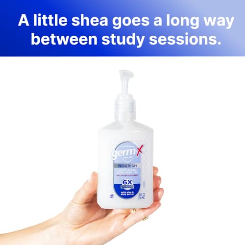 Germ-X Nourish Hand Sanitizer, 2-in-1 Moisturizing and Sanitizing Formula with Shea Butter, Vitamin E & Aloe, Non-Greasy, Fresh Citrus Scent, Back to School Supplies, Pump Bottle, 8 Oz (Pack of 6)