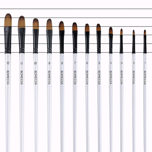 GETHPEN Filbert Paint Brushes Set, 12 PCS Artist Brush for Acrylic Oil Watercolor Gouache Artist Professional Painting Kits with Synthetic Nylon Tips White