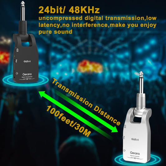Getaria Wireless Guitar System 2.4GHz Wireless Guitar Transmitter Receiver Electric Guitar Wireless Rechargeable Lithium Battery Audio Guitar Wireless System