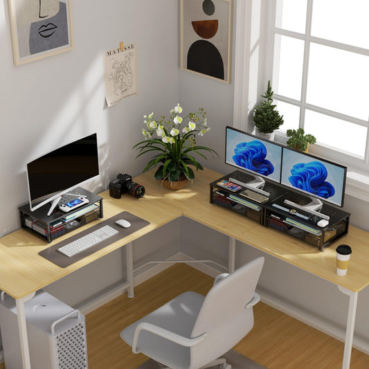 gianotter Dual Monitor Stand Riser, Desk Organizer With Drawer and 2 Pen Holders, Computer Monitor Stand, Desk Shelf for Top of Desk, Balck
