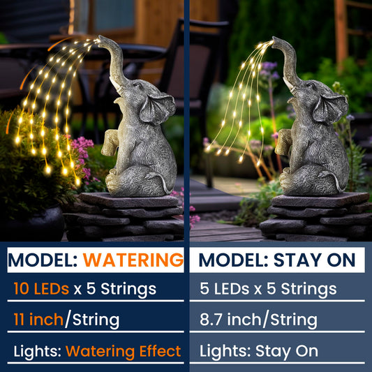 GIGALUMI Solar Garden Decor Watering Elephant Statues Outdoor, Birthday Gifts for Women Mom Grandma Senior Elder, Elephant Ornament for Balcony, Garden, Patio, Yard, Lawn (Constant Lights Only)