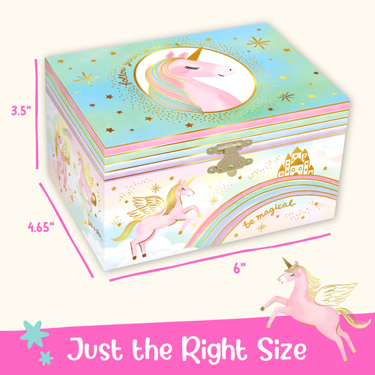 Giggle & Honey Musical Jewelry Box for Girls - Kids Jewelry Box, Unicorn Toys for Girls 4-6, Unicorn Gifts, 6 x 4.7 x 3.5 in