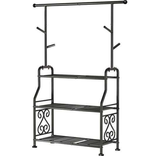 GIOTORENT Plant Stand Indoor, 3-Tier Heavy Duty Metal Shelf for Patio & Indoor, Tall Plant Holds 14+ Plants with 5 Hooks, Rust-Proof Plant Holder for Garden, Balcony, Living Room, Black