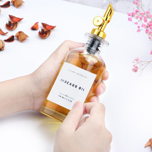 GIXSEGIE Olive Oil Dispenser Bottles for Kitchen with Bamboo Tray, Oil and Vinegar Dispenser Set, Coffee Syrup Dispensers, Glass Dispensers for Kitchen, Dispenser Bottle of 300ml - Set of 2 Gold
