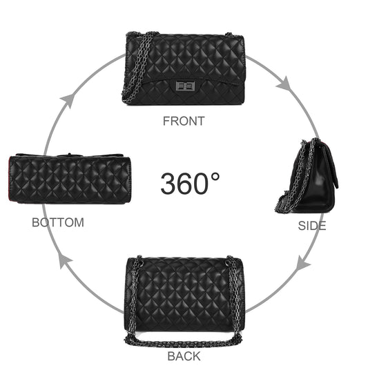 Gladdon Quilted Crossbody Purse for Women Trendy Ladies Shoulder Bag with Chain Designer Purses Black