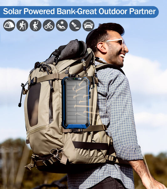 GOODaaa Power Bank Wireless Charger 36000mAh Built in 4 Cables Six Outputs 15W Fast Charging Power Bank for All Mobile Devices Three Inputs Solar Portable Charger with Dual Flashlights, Carabiner