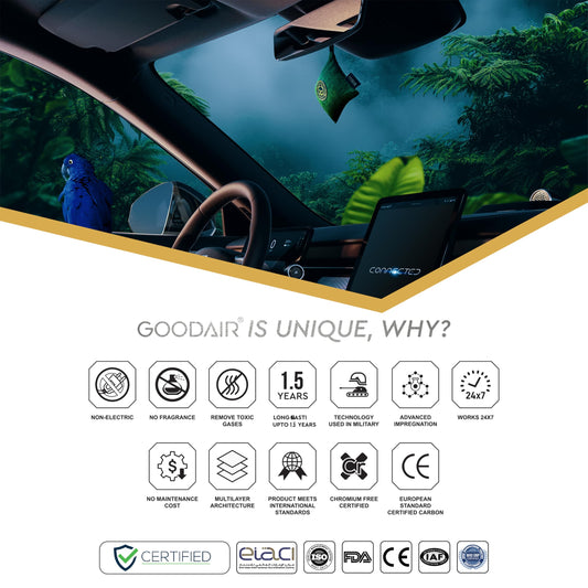 GOODAIR HEPA Car Air Purifier Bag & Pouch | 75g Activated Carbon Filter, Absorb Toxic Gases, 2.0 Premium Certified Air Purifier, Suitable for All Cars, 24/7 Air Purification - Forest Green