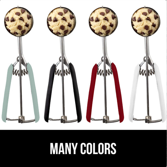 GORILLA GRIP Stainless Steel Cookie Scoop for Baking, 2 TBSP, Multipurpose Melon Baller, Meatball Spring Scoops, Perfect Portion Sizes, Easy Food Release, Scooper Size 40, BPA-Free Kitchen Tool, Black