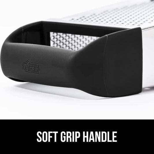 GORILLA GRIP XL 4-Sided Cheese Grater With Container, 100% BPA-Free Stainless Steel Box Graters, Parmesan Shredder, Grate Cheeses, Shred Veggies, Slip Resistant Handle, Dishwasher Safe Zester, Black