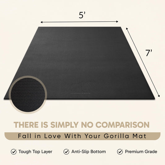 Gorilla Mats Premium Large Exercise Mat – 7' x 5' x 1/4" Ultra Durable, Non-Slip, Workout Mat for Instant Home Gym Flooring – Works Great on Any Floor Type or Carpet – Use With or Without Shoes