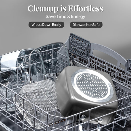 Gotham Steel Nonstick Square Deep Frying Pan, 9.5” Large Cooking Pan with Ceramic Nonstick Coating, Deep Fryer Pot with Basket, 4 Pc Titanium Ceramic with Lid, Basket & Steamer Tray, Dishwasher Safe