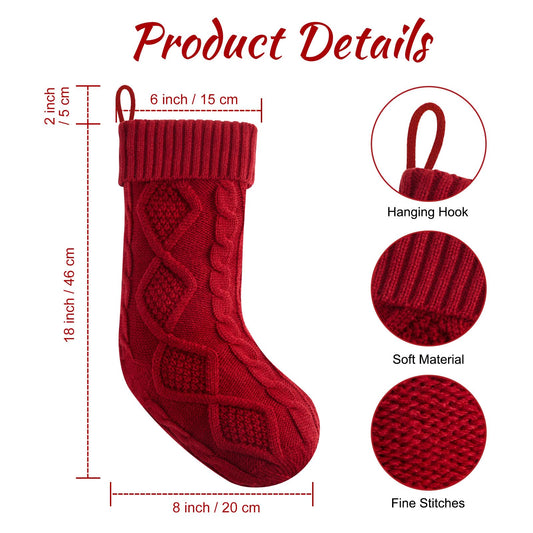 Personalized Christmas Stockings - 18 Inches Hanging Stockings with DIY Snowman Name Tags, 6 Pack Large Size Knitted Stockings for Mantels, Christmas Tree Family Holiday Decor, Red Green White