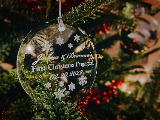 Personalized Crystal “First Christmas” Ornament – 3 in Round Keepsake with Gift Box & Ribbon – Custom Name & Year Baby, Couple or Family